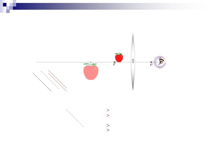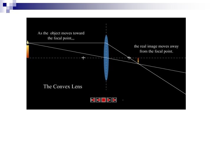 PEMBENTUKAN BAYANGAN Lensa cembung dapat digunakanuntuk memproyeksikan bayangan nyata Pada Lensa Cembung, bayangan nyata terbentuk pada titik pertemuan semua berkas sinar yang melewati lensa
