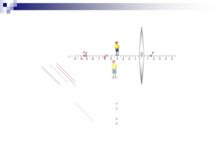 PEMBENTUKAN BAYANGAN Pada proses pembentukan bayangan berlaku: n n n Sinar datang pada lensa cembung sejajar dengan sumbu lensa akan dibiaskan menuju titik fokus lensa. Sebaliknya jika sinar datang melewati titik fokus akan dibiaskan sejajar sumbu lensa. Sinar datang pada lensa cekung sejajar dengan sumbu lensa akan dibiaskan seolah-olah berasal dari titik fokus lensa. Sebaliknya jika sinar datang menuju titik fokus akan dibiaskan sejajar sumbu lensa. Sinar yang datang melalui pusat lensa akan diteruskan.