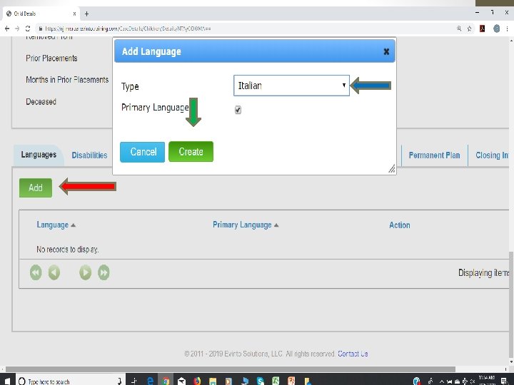 Child information, cont. • The tabs along the bottom will need to be filled in • Languages – to add a Language • • Step 1: Click Add Step 2: Use the Drop down menu to choose the language Step 3: Click create You can put in multiple languages • Disabilities – to add a Disability • • Step 1: Click Add Step 2: Use the Drop down menu to choose Step 3: Click Create You can put in multiple disabilities