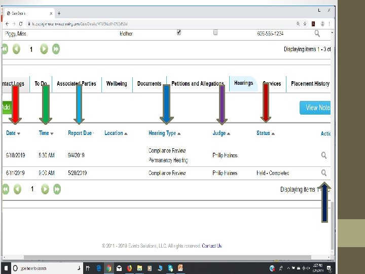 Hearings • This is where all hearing information can be found • This will provide: • • • Hearing Date Hearing Time Report Due Date Hearing Type Judge Hearing Status