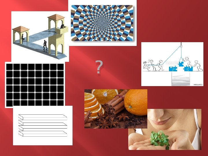 - Ablauf � Illusions Arten � Bilder- und Quizrätsel -> optische Täuschung � Geruchsmemory -> Wahrnehmung � Bau einer Brücke -> Geschick � Auswertung : p