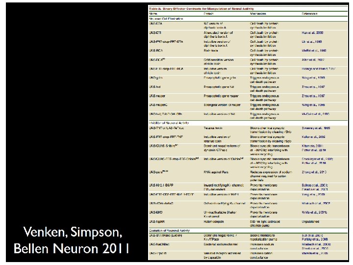 Summary - Transgenes can be targeted to specific subsets of cells using binary transcription activation - Transgenes can be used to control neural activity and influence behaviors - What possibilities could this have for humans ? - What various types of experimental paradigms can be used to address new questions ?