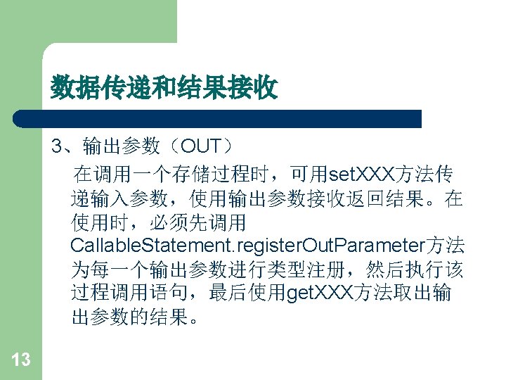 Callable. Statement类 Callable. Statement对象用于执行数据库中的 存储过程。 37