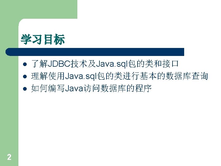 加载My. SQL驱动程序 Driver. Manager. register. Driver(new org. gjt. mm. mysql. Driver()); 或 Class. for. Name(“org. gjt. mm. mysql. Driver”) 21