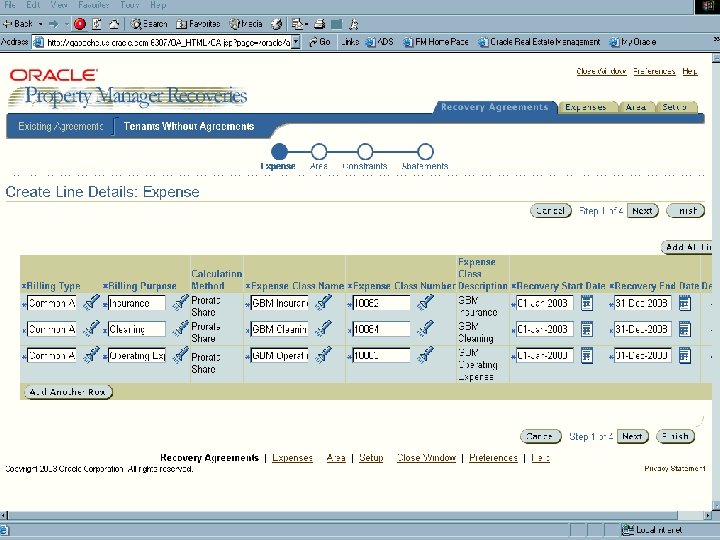 Recoveries Ÿ Oracle’s term for our support of Common Area Maintenance (CAM) functionality Ÿ Open design to accommodate any recoverable expense Ÿ Integration to Oracle General Ledger but also supports other expense sources Ÿ Solidifies our footprint for Commercial Real Estate Management