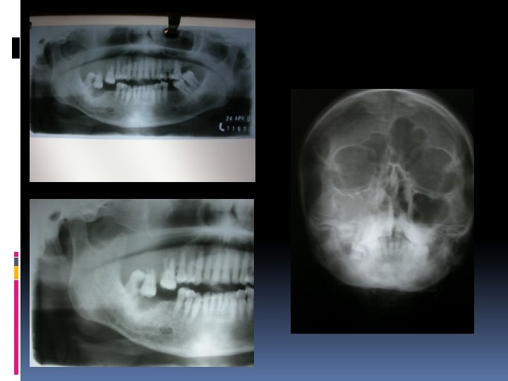 Imaging PA Mandible, Opg, Occlusal, PNS CT-Scan MRI Radio-nuclide scanning Chest PA
