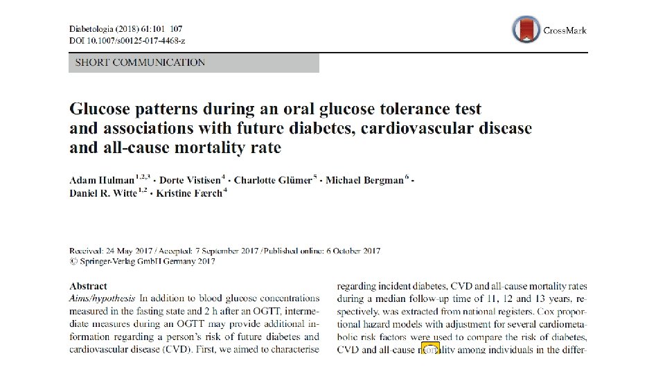 Oral glikoz tolerans testi sırasında glukoz modelleri ve gelecekteki diyabet, kardiyovasküler hastalık ve tüm nedenlere bağlı mortalite oranı ile ilişkisi Arş. Gör. Dr. Hatice ALKAYA KOL Aile Hekimliği ABD 15. 05. 2018