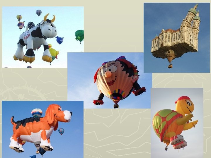 Karšto oro balionai Pašildyto oro balionai naudojami ir dabar mokslinėse ekspedicijose, žemės ir jūros paviršiui, gyvūnų sambūriams fotografuoti. Jie patogūs tuo, kad oro temperatūrą juose, vadinasi, ir Archimedo jėgą galima reguliuoti dujų degikliu, įtaisytu po anga apatinėje baliono dalyje. Galima parinkti tokią temperatūrą, kurioje baliono ir kabinos svoris bus lygus Archimedo jėgai. Tuomet balionas pakimba ore ir iš jo lengva stebėti.