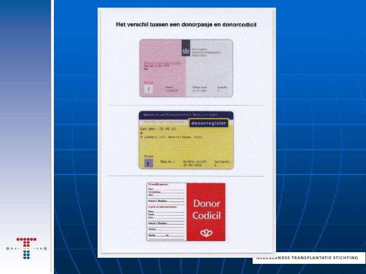 Donorregister n n Tot 12 jaar beslissen ouders 12 -15 jaar registratie kan maar ouders vetorecht 16 -17 jaar geen vetorecht ouders meer Partner-of ouders bij geen registratie