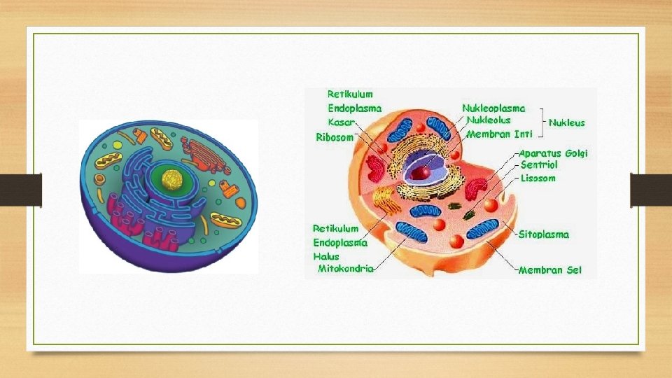 Keterangan: 1. Nukleolus 2. 3. 4. 5. 6. 7. 8. 9. 10. 11. 12. 13. 14. Inti sel Ribosom Vesikel Retikulum Endoplasma Kasar Golgi Sitoskleton Retikulum Endoplasma Halus Mitokondria Vakuola Sitoplasma Lisosom Sentrosom Membran Plasma