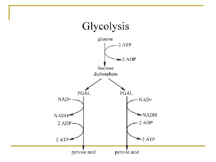 Respirasi sel n n n Proses respirasi sel meliputi 3 tahap, yaitu glikolisis, daur krebs dan transport elektron. Glikolisis : pecahnya glukosa → asam piruvat (3 atom C) di dalam sitoplasma tahapan-tahapan : gugus P ATP berikatan dg C 6 glukosa → glikolisis → senyawa fruktosa 1, 6 fosfat → gugus P berikatan lagi → fruktosa 1, 6 difosfat → dipecah menjadi dihidro aseton fosfat dan 3 fosfogliseraldehida → reaksi kimia → 2 molekul piruvat, 2 molekul NADH (sumber elektron berenergi tinggi) dan 2 molekul ATP