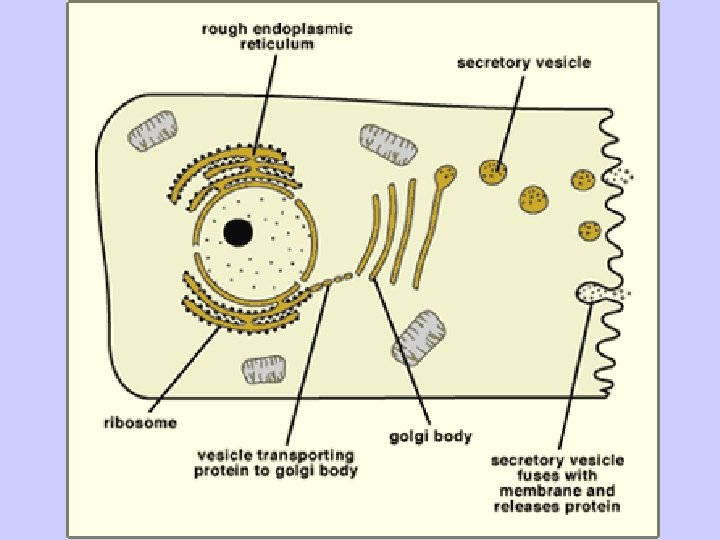 Organelles involved in synthesis and secretion of proteins Examples of proteins: • hormones eg insulin • enzymes eg amylase