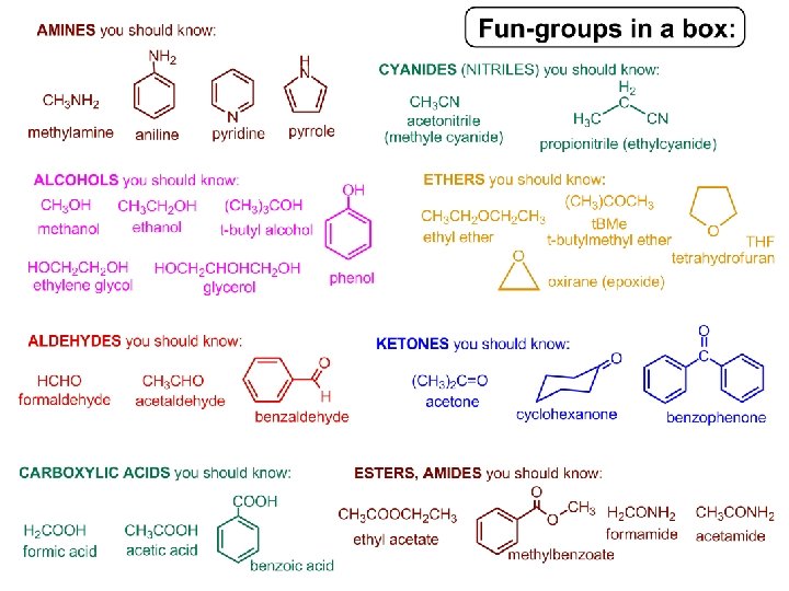 Q: Now that you have a supply of haloalkanes - made by radical halogenation – what other compounds can you make out of them? A: Many other kinds of compounds – for example: - alcohols thioalcohols (mercaptanes) ethers, linear and cyclic thioethers (sulfides), linear and cyclic peroxides esters amines (1º-, 2º-, 3º- and 4º- amines) cyanides (nitriles) azides alkanes alkynes