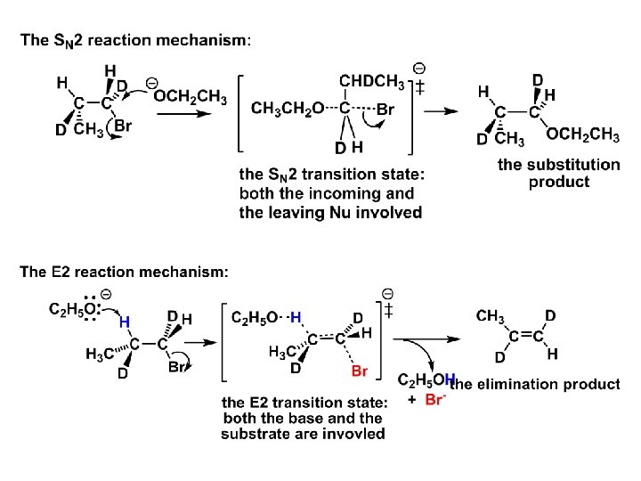 Other types of elimination reactions: E 2 When a nucleophile Nu: replaces the leaving group on Csp 3 in a concerted (smooth, continuous) way this is an S N 2 reaction. When the same nucleophile is a strong Broensted base, it can lead to a concerted elimination, or the so-called E 2 reaction: