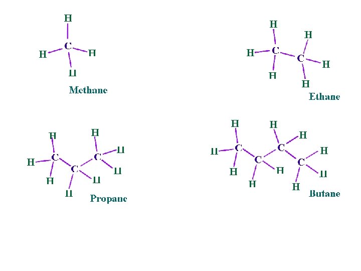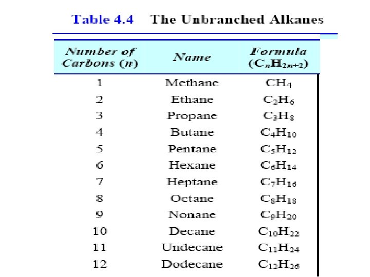 PHYSICAL PROPERTIES OF ALKANES • 1) At room temperature (rt, 25 °C) and 1 atm pressure, the C 1 -C 4 unbranched alkanes are gases; the C 5 -C 17 unbranched alkanes are liquids; the unbranched alkanes with 18 or more carbon atoms are solids.