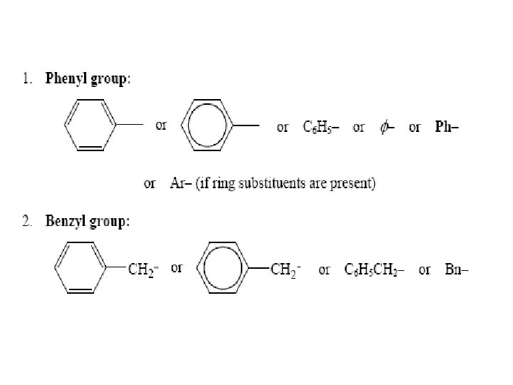 Important note • The common names isopropyl, isobutyl, secbutyl, tert-butyl are approved by the IUPAC for the unsubstituted groups. • In deciding on alphabetically order disregard structure-defining prefixes that are written in italics and separated from the name by a hyphen. Thus “tert-butyl” precedes “ethyl”, but “ethyl” precedes “isobutyl”.