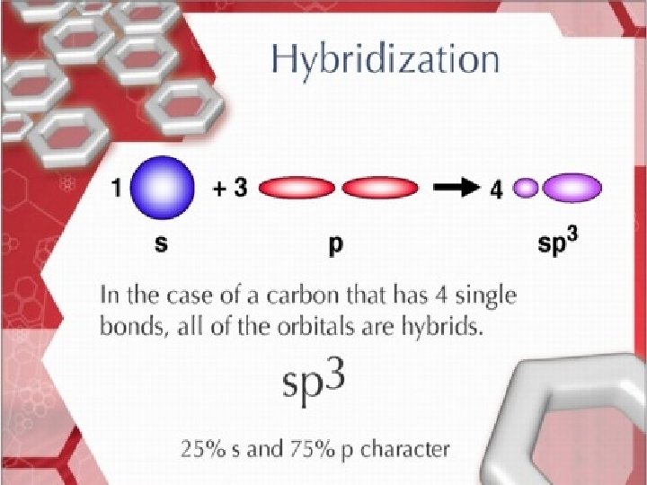 Hybridization sp 3 sp 2 sp • Tetrahedral • Trigonal Planar • Linear