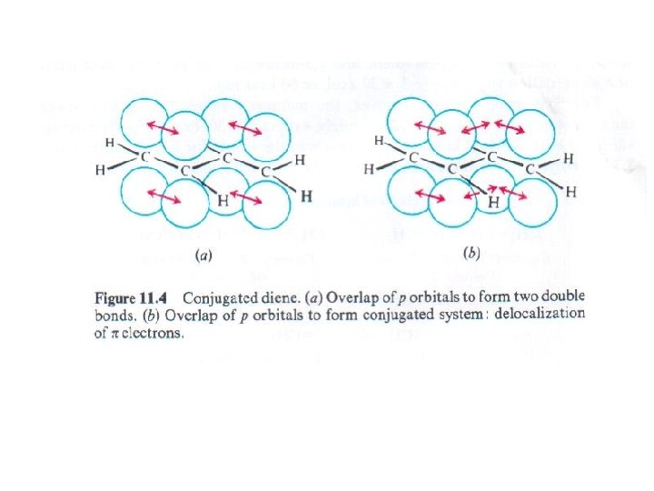 Conjugation occurs whenever p orbitals can overlap on three or more • adjacent atoms. The four p orbitals on adjacent atoms make a 1, 3 -diene a conjugated system. •