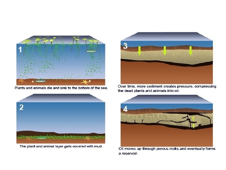 • Crude oil is a finite resource found in rocks (it will run out) • Crude oil is the remains of an ancient biomass consisting mainly of plankton that was buried in mud