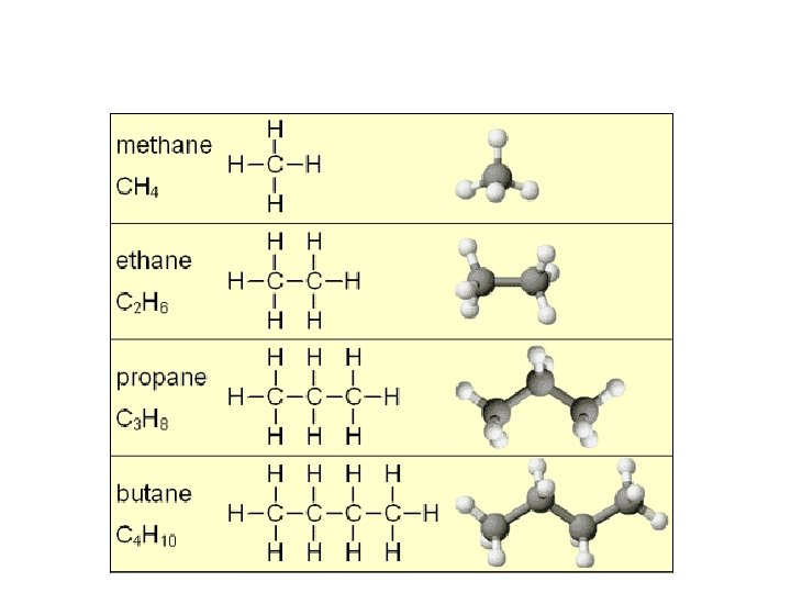 Incomplete combustion • Incomplete combustion occurs when there is not enough oxygen • Incomplete combustion produces carbon monoxide (which is a toxic gas) • Methane and ethane example