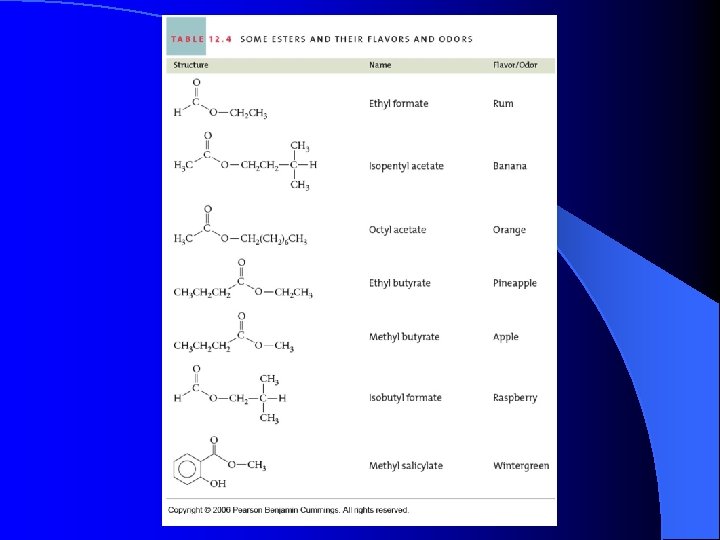 O CH 3 Ester O H C O C CH 3 Raspberry R C O R' H H O CH 3 H C C O CH 2 C CH 3 H CH 3 Banana H O H C C O CH 2 (CH 2)6 CH 3 H PP Ester Lab Orange
