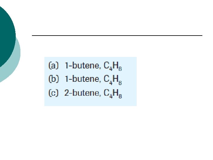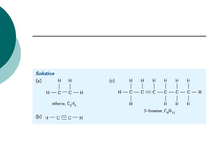 Drawing Structural Formulas for Alkenes and Alkynes ¡ Draw a structural formula and write the molecular formula for 1 -hexene. l l Step 1: Write Carbon Backbone of Appropriate Length Start with the name “hexene. ” The hextells you that there are six C atoms in a chain.