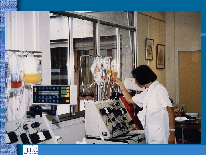 Quelques Chiffres Evolution des prélèvements en 12 ans jusqu ’en 2001 : chute de près de 40% Stabilisation autour de 2002 Augmentation des besoins plus rapide que les dons En 2007 : 2 765 000 prélèvements Homologues/an en France 4, 1 % de la population 18 -65 ans. 1 500 000 donneurs 86 % des prélèvements en sang total 83 % des prélèvements de ST en équipes mobiles EFS Rhône-Alpes : 299 500 prélèvements en 2007 Site de Grenoble : 58 000
