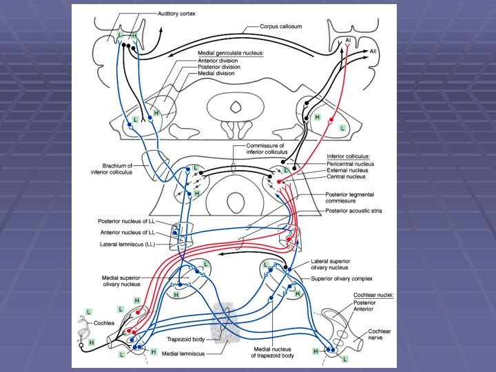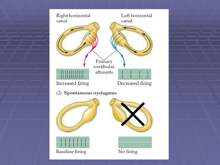 Ménière Disease results from a disruption of normal endolymph volume Symptoms include: Severe vertigo Positional nystagmus (nystagmus when head in a particular position) Nausea Affected individuals can also experience-unpredictable attacks of auditory & vestibular symptoms: Vomiting Tinnitus (ringing in ears) Inability to make head movements Inability to stand passively Low frequency hearing loss Treatment: administration of a diuretic (hydrochlorothiazide) & a salt restricted diet Persistent condition: shunt implantation into swollen endolymphatic sac, or delivery of a vestibulotoxic agents (gentamicin) into perilymph.