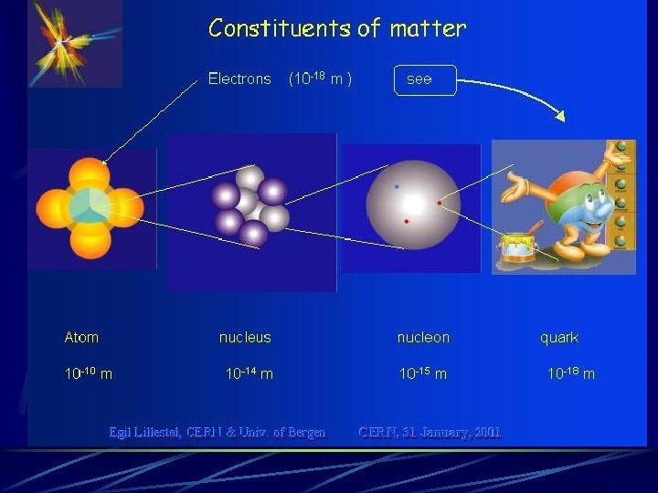 0, 000. 01 m = 10 fermi Tamaño típico de un núcleo atómico