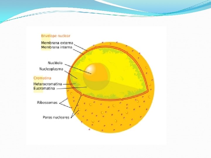 3. Núcleo celular Se localiza geralmente no meio da célula. Geralmente é único. È formado por: Carioteca (membrana que o delimita). Suco nuclear ou nucleoplasma. Material genético: DNA e RNA Nucléolo. Funções: Controlar todas as atividades da célula. Determinar todas as nossas características hereditárias (genéticas).