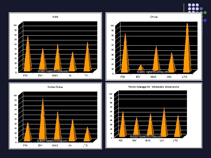 Geert Hofstede’s Culture Dimensions l Power Distance (PDI) l Individualism (IDV) l Masculinity (MAS) l Uncertainty Avoidance (UAI) l Long term Orientation (LTO)