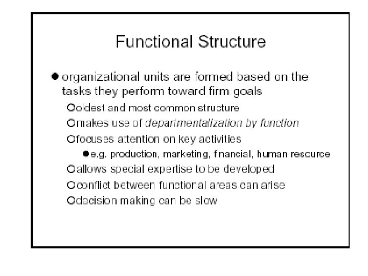 types (cont. ) • Functional authority is authority delegated to an individual or department over specific activities undertaken by personnel in other departments. Staff managers may have functional authority, meaning that they can issue orders down the chain of command within the very narrow limits of their authority. For example, supervisors in a manufacturing plant may find that their immediate bosses have line authority over them, but that someone in corporate headquarters may also have line authority over some of their activities or decisions.