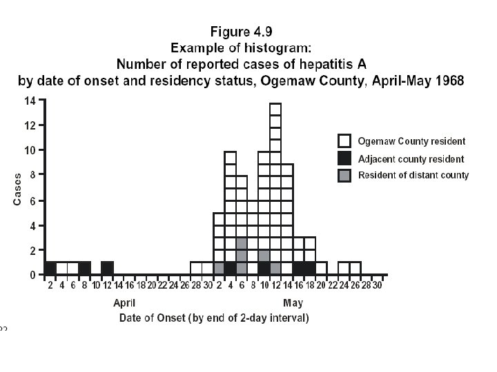 Mapping • Use of Coordinates • Shows geographic location/distribution • Can be important in – Outbreak investigation – Health assessments – Intervention planning/evaluation