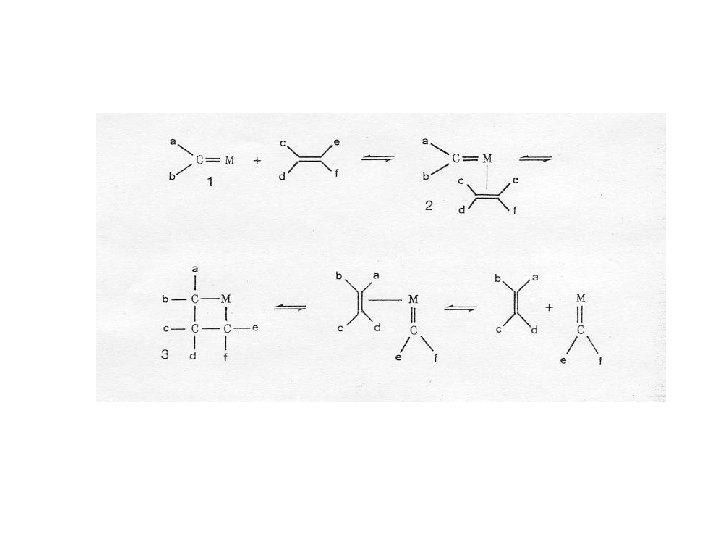 Alkene Metathesis • Demonstrate – Propene and 1 -butene (what are the 4 new products that may form from methathesis? ) • Ring-opening metathesis (ROM) • Chauvin mechanism is most widely accepted. – Involved a carbene complex – The carbene reacts with an alkene to form a metallocyclobutane intermediate. The intermediate can either revert to reactants or form new products. – Schrock metathesis catalysts are most effective and the most studied (available commercially). • Ring-closing methathesis (page 545)