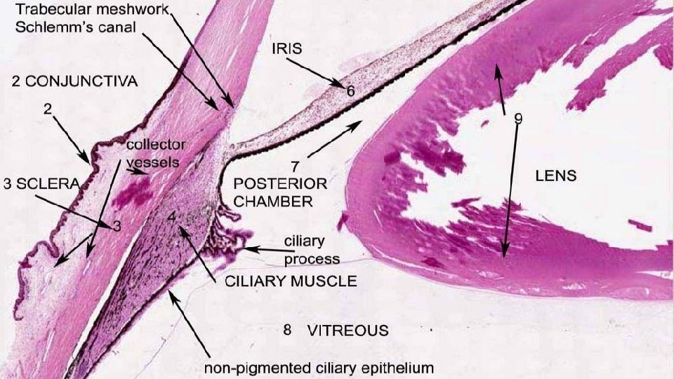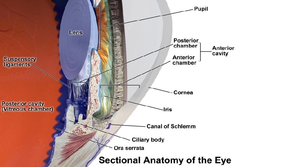 C. TUNICA SENSORIA BULBI (RETINAE) 1. PARS OPTICA 2. ORA SERRATA 3. PARS CILIARIS 4. PARS IRIDICA