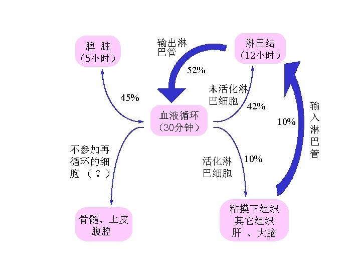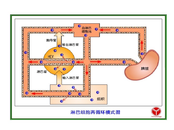 淋巴结是被膜包囊物,非常 策略地分布于全身去接受和 过滤来自于外周组织间隙液 和淋巴液中的抗原及细胞( Lymph nodes are encapsulated strictures that are strategically placed throughout the body to receive and filter antigens and cells from peripheral interstitial fluid and lymph). 所有淋巴液 最终汇到胸导管并回到外周 血中All lymph nodes eventually drain into the thoracic duct and back to the peripheral blood.