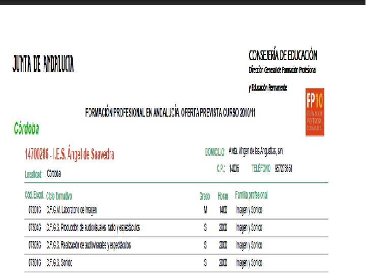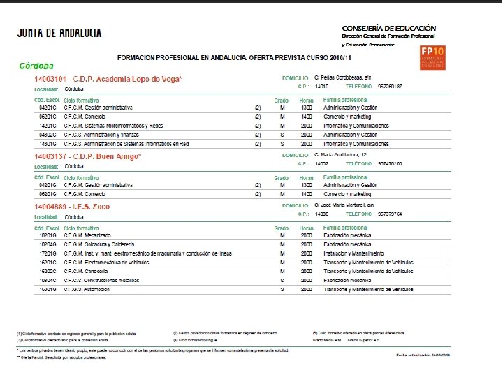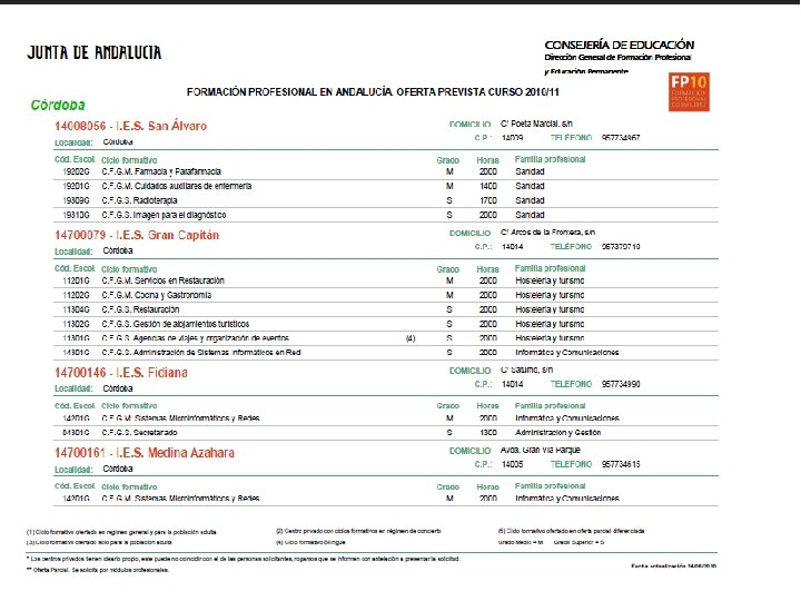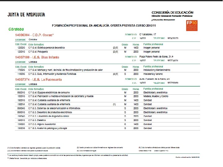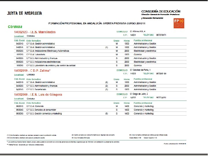 Solicitud y Matriculación n n Solicitud: q En el centro donde deseas cursar el título escogido. q Del 1 al 25 de junio. Adjudicaciones: q 25 al 30 de junio (1ª adj). q 1 al 8 de septiembre (2ª adj. ) q 20 al 22 de septiembre (3ª adj). q 26 al 28 de septiembre (4ª adj. ).