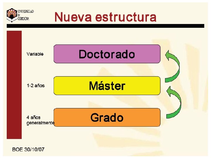 ENSEÑANZAS DE RÉGIMEN ESPECIAL: ESCUELA OFICIAL DE IDIOMAS. n n Criterios de acceso: q 1º ciclo de ESO finalizado. Duración. q Ciclo elemental: 3 años. q Ciclo superior: 2 años. Titulación: q Certificado del ciclo elemental. q Certificado de aptitud del grado superior Oferta en Córdoba: