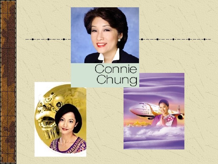 Icon 宗毓華 (Connie Chung) Exotic anchorwoman Other female, Asian anchorwomen are asked to dress like Connie Chung Image source Airline ads of Asian flight attendants Always bowing to customers Subject and subordinate to a comfortable, luxurious service.