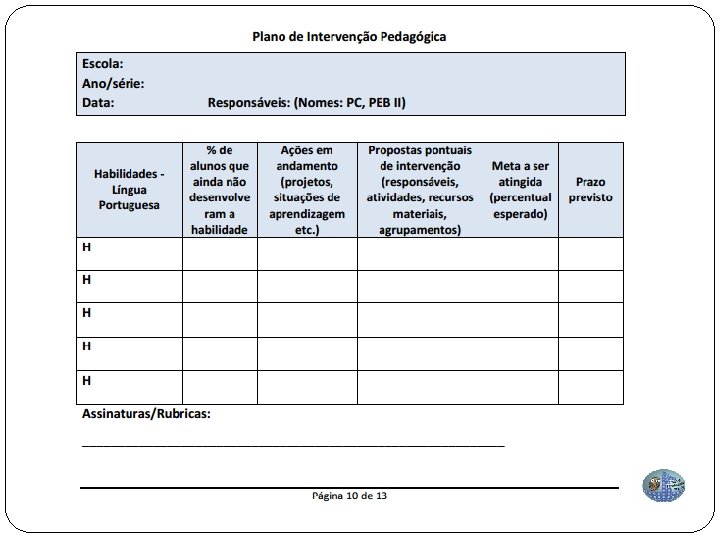 ORIENTAÇÕES PARA O ACOMPANHAMENTO DA INTERVENÇÃO PEDAGÓGICA - PIP Conforme o Documento Orientador para elaborar o Plano de Intervenção Pedagógica é necessário considerar: • Construir o plano coletivamente; • Ser orientado e acompanhado pelos Supervisores de Ensino, PCNPs e PCs; • Instrumento que deve consolidar a parceria e a corresponsabilidade entre os atores; • Incluir outros profissionais como PA (Professor Auxiliar), PAA (Professor de Apoio à Aprendizagem), Professor da Sala de Leitura, Professores das disciplinas do Currículo, etc. • Levar em conta os Projetos já em andamento na escola ou nas ações de implementação curricular em progresso.