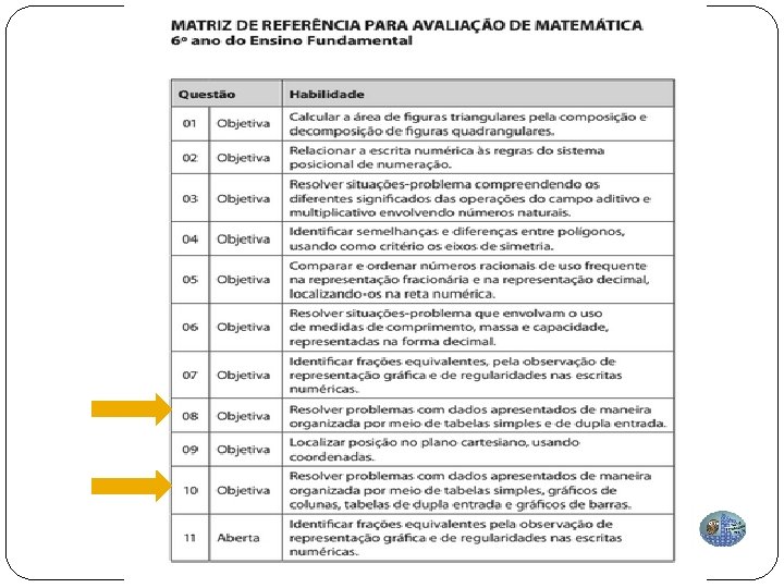 As habilidades se repetem ao longo dos anos MATRIZ DE REFERÊNCIA PARA AVALIAÇÃO DE MATEMÁTICA 7º ano do Ensino Fundamental MATRIZ DE REFERÊNCIA PARA AVALIAÇÃO DE MATEMÁTICA 8º ano do Ensino Fundamental
