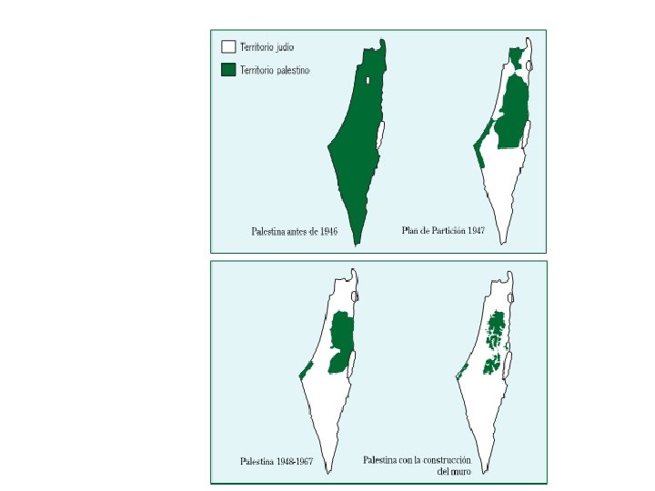 Espacios vividos y soñados • Hay varias Palestinas: • La de los campos de refugiados del Líbano o de Siria o de Jordania • Los campos de Gaza o de Cisjordania • Los barrios en ciudades israelíes • La memoria anterior a 1948