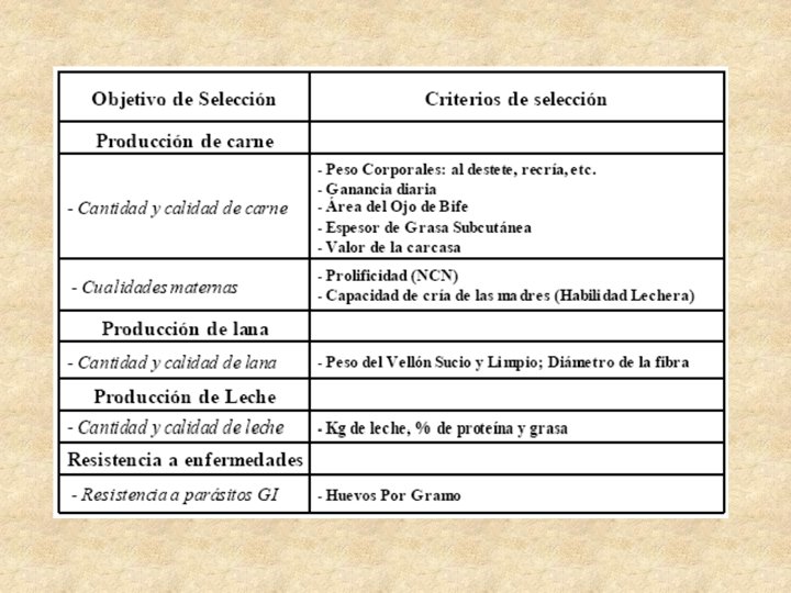 Objetivos de Selección ¿Qué queremos cambiar ? § Conjunto de cualidades que sería deseable reunieran los animales para hacerlos más productivos desde el punto de vista económico § importancia económica afectan directamente ingresos y/o costos § Progreso genético: requiere objetivos consistentes a largo plazo § Las alternativas a utilizar dependerán de los objetivos de las explotaciones