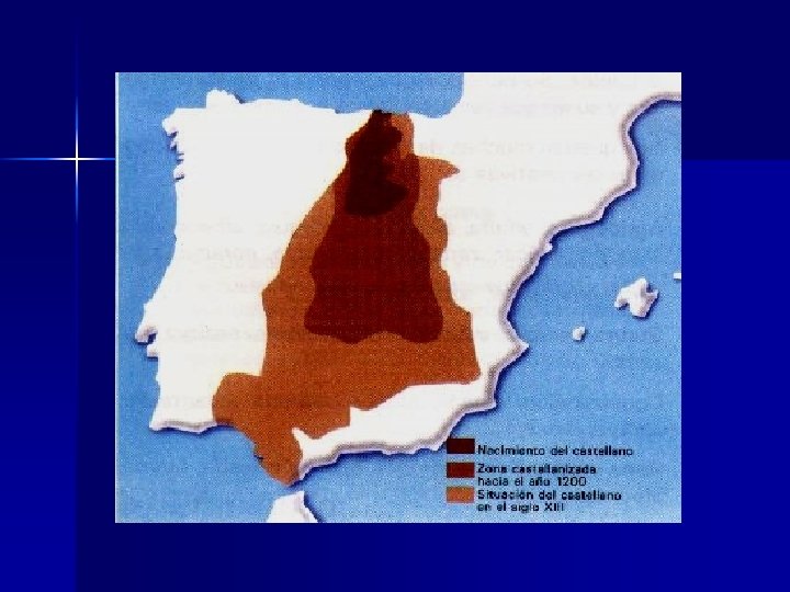 Nacimiento y expansión del castellano n n En el norte de España, los cristianos hacen frente a los árabes en pequeños grupos. Su lengua va evolucionando con el paso de los siglos para dejar de ser el latín y formar una lengua nueva: el castellano. Durante la Reconquista, los cristianos van ganando terreno a los árabes, y con ellos la lengua castellana se va extendiendo hacia el sur de la Península. Al finalizar el siglo XIV, el castellano es la lengua más usada en España.