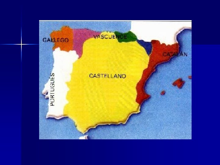 Expansión del castellano en España n n Según parece, el castellano nació en la parte norte de Castilla, en una zona comprendida entre Cantabria y Burgos. A la vez que el castellano y debido a diferentes evoluciones del latín, se desarrollaron otras lenguas que se extienden frente a la dominación árabe. El vasco, en cambio, permaneció aislado y sin alteraciones con el paso de los siglos gracias a su situación geográfica. De esta manera se va formando el actual mapa lingüístico de la Península ibérica, formado por cuatro lenguas románicas: castellano, catalán, gallego y portugués; además de una lengua no románica: el vascuence.