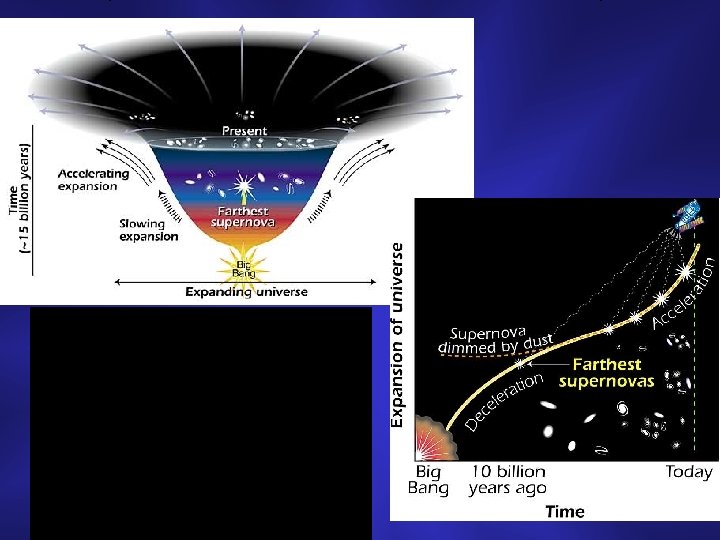 Comparando resultados • Las estrellas mas viejas • La expansión del Universo 12 a 13 millones de años de antigüedad Tomando en cuenta la contribución de la materia y y tomando =1, se estima una edad de 13. 7 miles de millones de años (con un error de 1%).