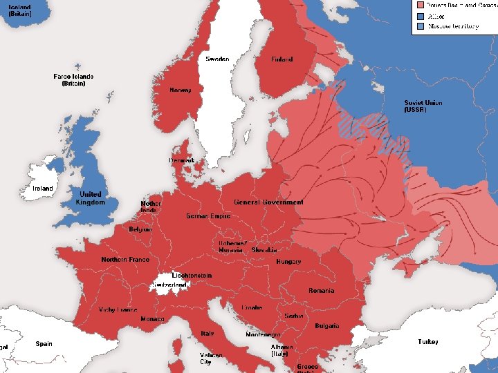 German Armies Roll across Sept. 1, 1939 Germany invades and conquers Poland (blitzkrieg) blitzkrieg Then the Low Countries fall (Belgium, Netherlands, Luxembourg) Skirting the Maginot Line, Line pushing the French and English troops to the sea (Dunkirk), the Germans forced the French to surrender, June, 22 A puppet French government was set up. Vichy France