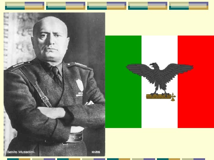 Mussolini establishes a Fascist Dictatorship in Italy Mussolini’s( Il Duce) emotional outbursts rallied the people of Italy to the fascist cause. Fascism is based on extreme nationalism in which the state comes before individual liberty. His violent rants agitated his supporters to take control of Italy’s government. He wanted to create a new Roman Empire