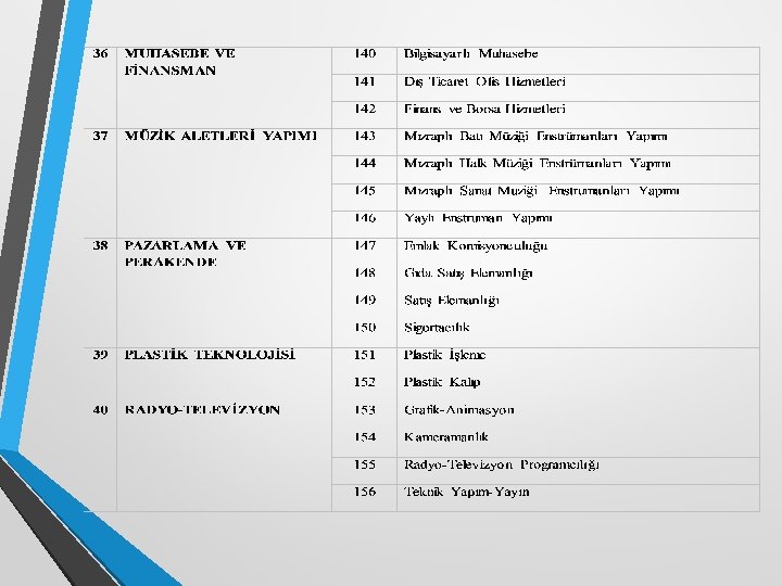 MESLEKİ VE TEKNİK ANADOLU LİSESİ • TİCARET MESLEK LİSESİ q Kamu ve özel sektörün muhasebe ve finansman, pazarlama ve perakende, büro yönetimi ve sekreterlik, bilişim teknolojileri alanlarında nitelikli elemanları yetiştiren, öğrencileri hem mesleğe hem de yüksek öğrenime hazırlayan dört yıl eğitim süreli meslek liseleridir.