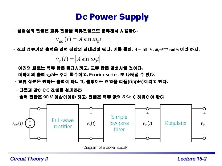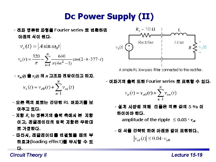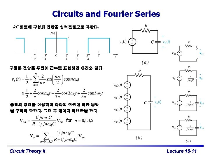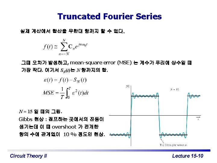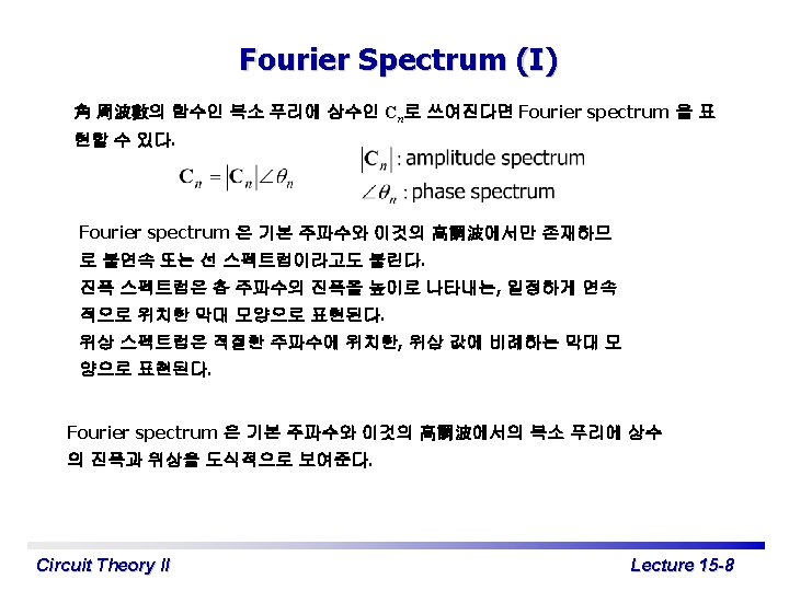 Exponential Form of Fourier Series c 0 = a 0 이고 cn∠qn=an – jbn 이다. 이라고 정의하 면 여기서 Circuit Theory II Lecture 15 -7